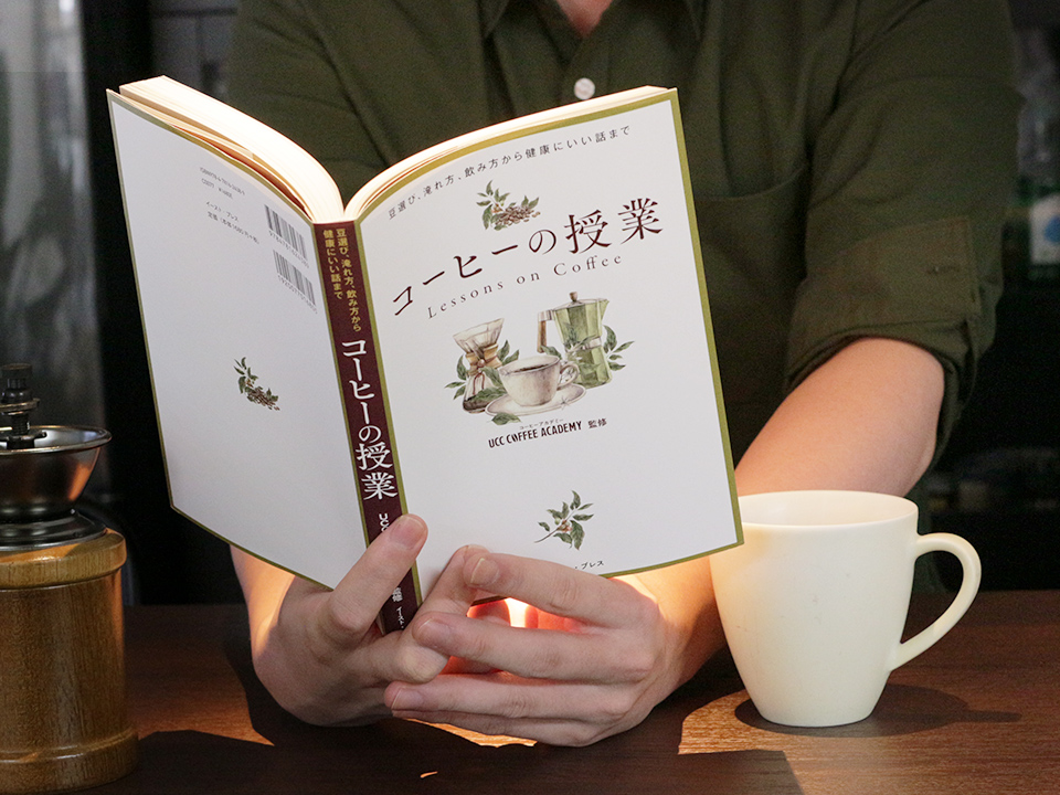 得意顔の後輩君がこっそり読んでいたのは、UCCコーヒーアカデミーが初めて監修した書籍「コーヒーの授業〜豆選び、淹れ方、飲み方から健康にいい話まで〜」。初心者から愛好者まで、コーヒーを学んでみたいという方に向けて、基本を解説したコーヒーの入門書です。