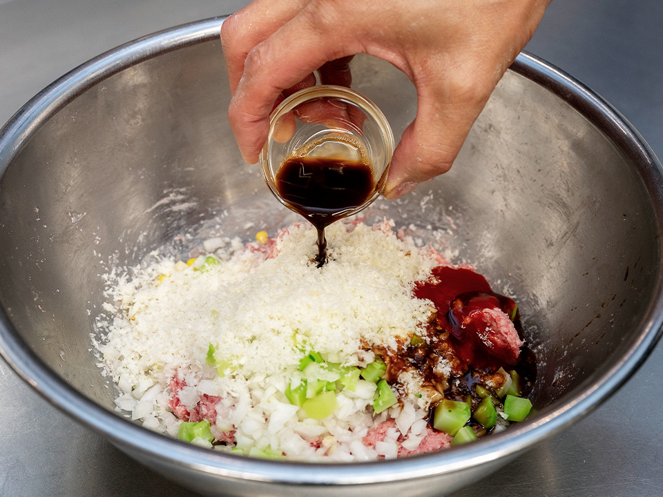 ミートローフにコーヒーを加えると、香りを主張するというよりも、味わいにぐっと深みとコクが加わるのだそう。さらに、パン粉がコーヒーの水分を吸ってくれるので、ツナギとしてのまとまりも良くなり、ふっくらとした仕上がりに。