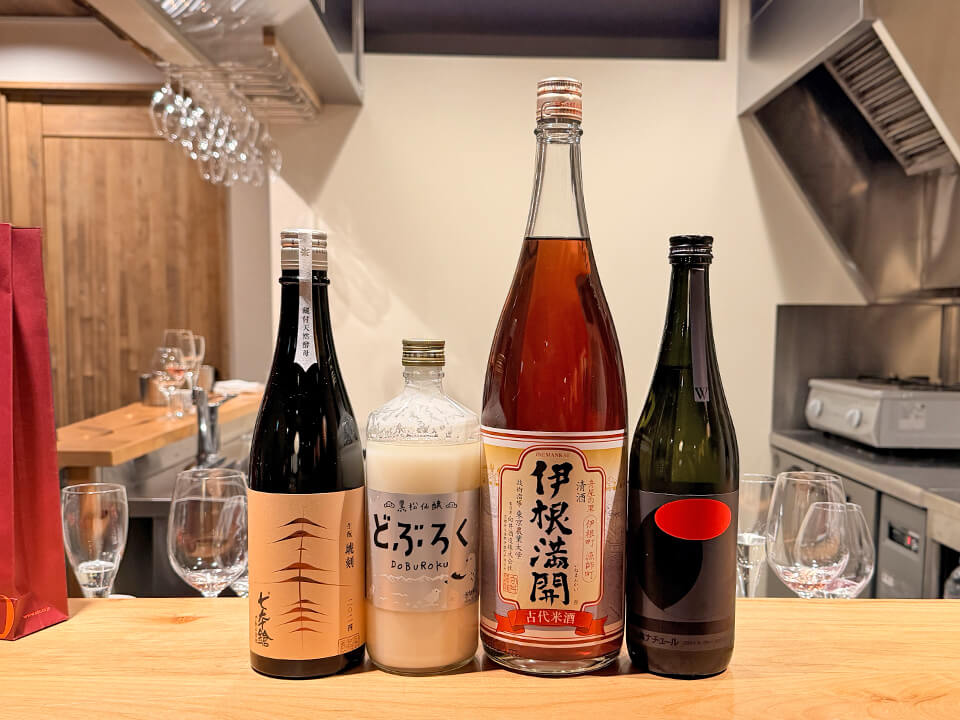 日本酒とのペアリングに合わせて選ばれたのは、サケラボトーキョーのオーナーであり、唎酒師でもある甲斐 勇樹さんが厳選した4本の日本酒。